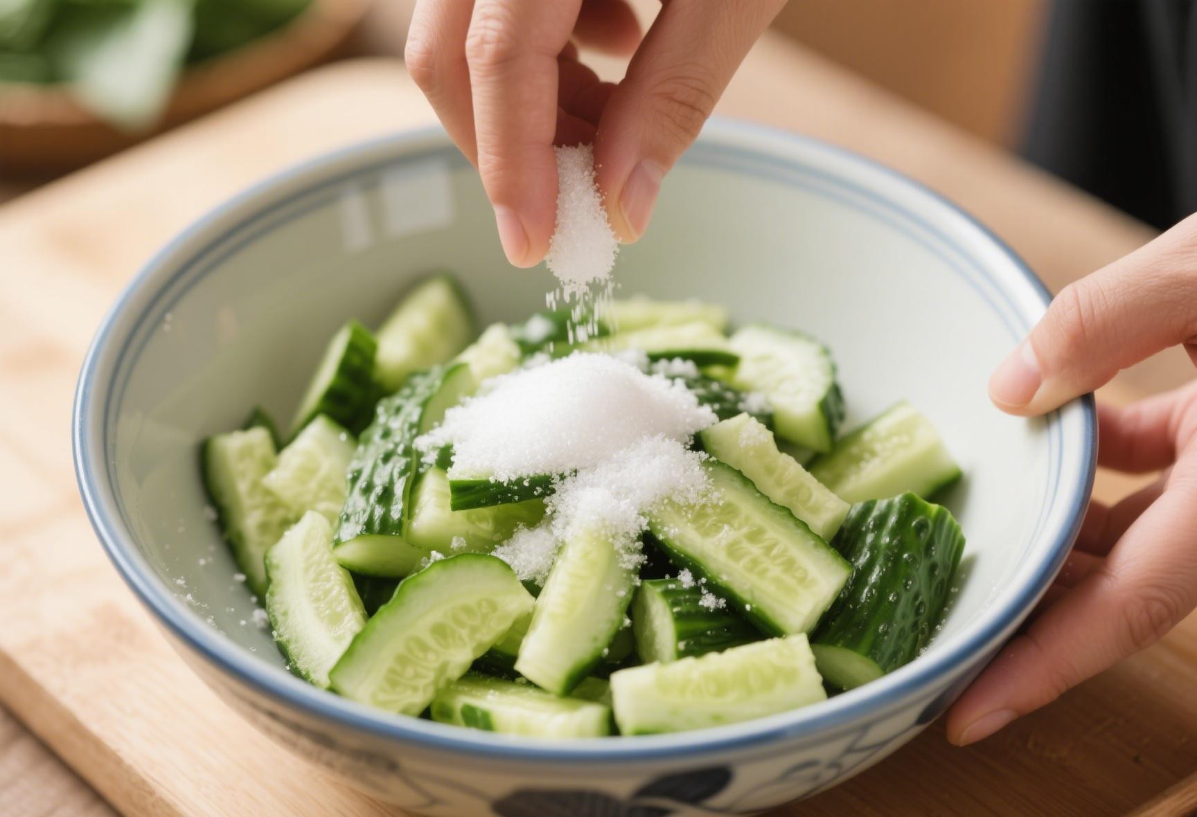 切记不要直接加盐!改放1勺白糖腌制20分钟。糖分既能析出多余水分,又能形成保护膜锁住脆度,比用盐腌制更清甜爽口。食材预处理