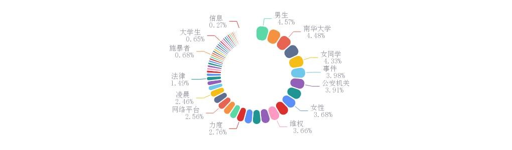 分析时段内,“男生”一词出现频率最高,达4247次,其次是“受害者”,出现次数达4183次。