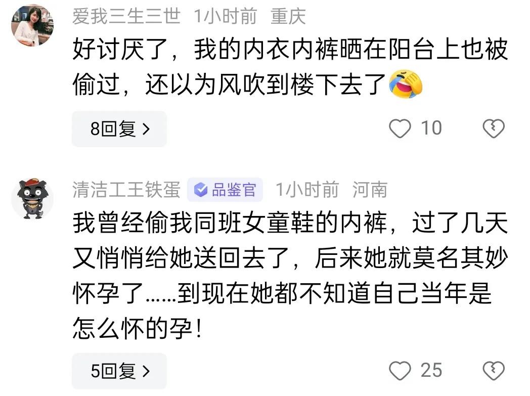 评论区里有很多女士都表示自己曾经也被偷过内衣内裤。