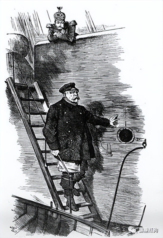 英国人Sir John Tenniel所画的历史漫画《Dropping the Pilot(俾斯麦下台)》(1890年)