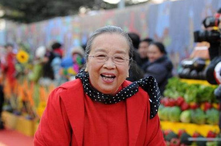83岁的她看上去状态依然很好,身穿碎花丝绸裙,还穿了一双暗红色的豆豆鞋。
