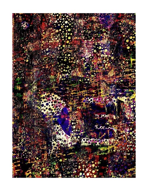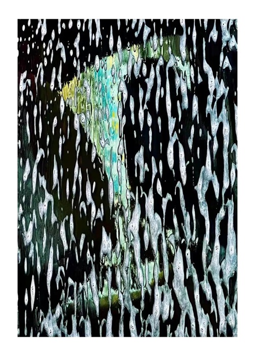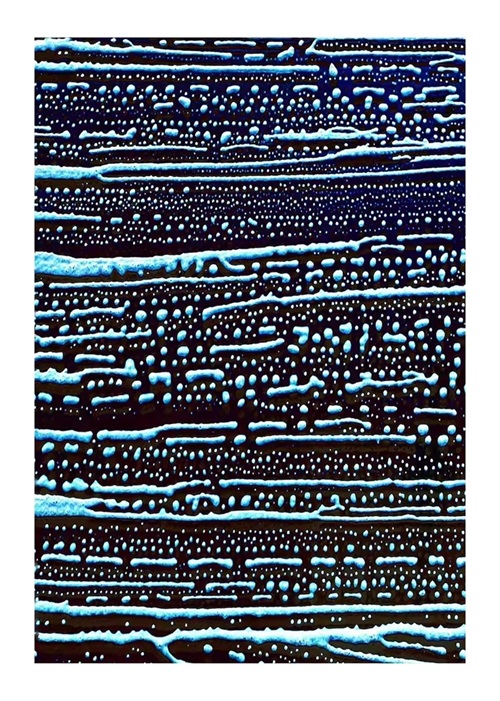 作者由此引申出了这组作品的主题。那些洗车泡沫跳跃的点连成了流淌的线,与背景色彩铺陈出奇特的视觉引力和心灵乐章,进而开启情感联觉和鸣奏的境界。