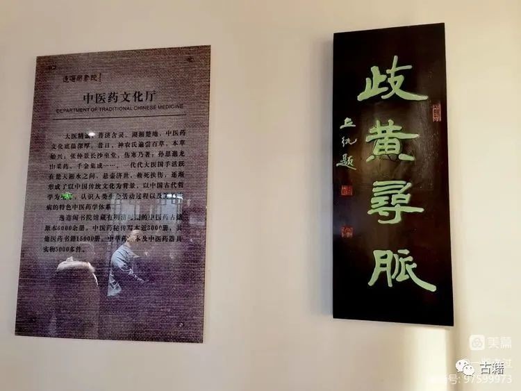五千年的中华文明从未间断,前来书院三楼《传统文化馆》“歧黄寻脉·中医文化厅”参观的人常常也是络绎不绝。此厅珍藏有明清时期的中医药古籍原来6000余册,中医药秘传写本近3000册,中草药标本及中医药器具实物5000多件。参观者中有全国各地的中医医院专家学者、医务人员、中医药大学的在校师生,也有当地村民。他们各取所需,对传承我国中医药文化产生着积极影响。“道德探奥·道教文化厅”,珍藏有关于道教道书籍原件6000余册,复印本文献2500余册,水陆画4000多幅,木刻印版3000多块,各类实物器具10000余件,般若溯源·佛教文化厅,珍藏有明清以来的佛教水陆画2000多轴,佛经古籍原本3000余册,造像和其它器物近5000件。这些中国乃至世界文化遗存都是不可多得的珍贵资料,据说不少道教、佛教人士前来游研。