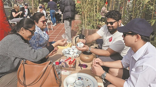 外国游客在厦门感受“茶桌仔”文化。
