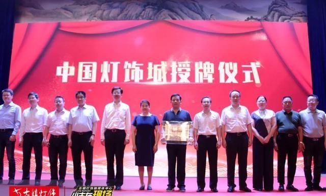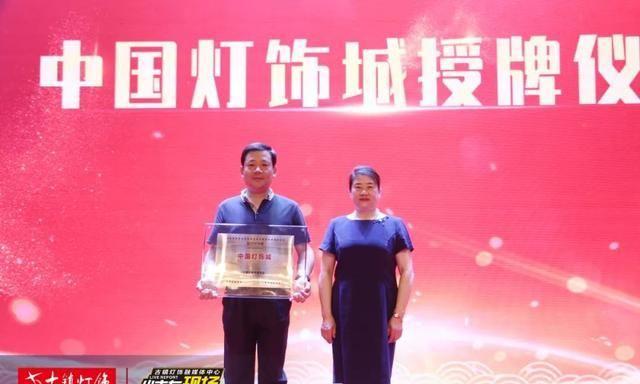 代表中国照明电器协会授予临沂灯具城“中国灯饰城”荣誉称号牌匾