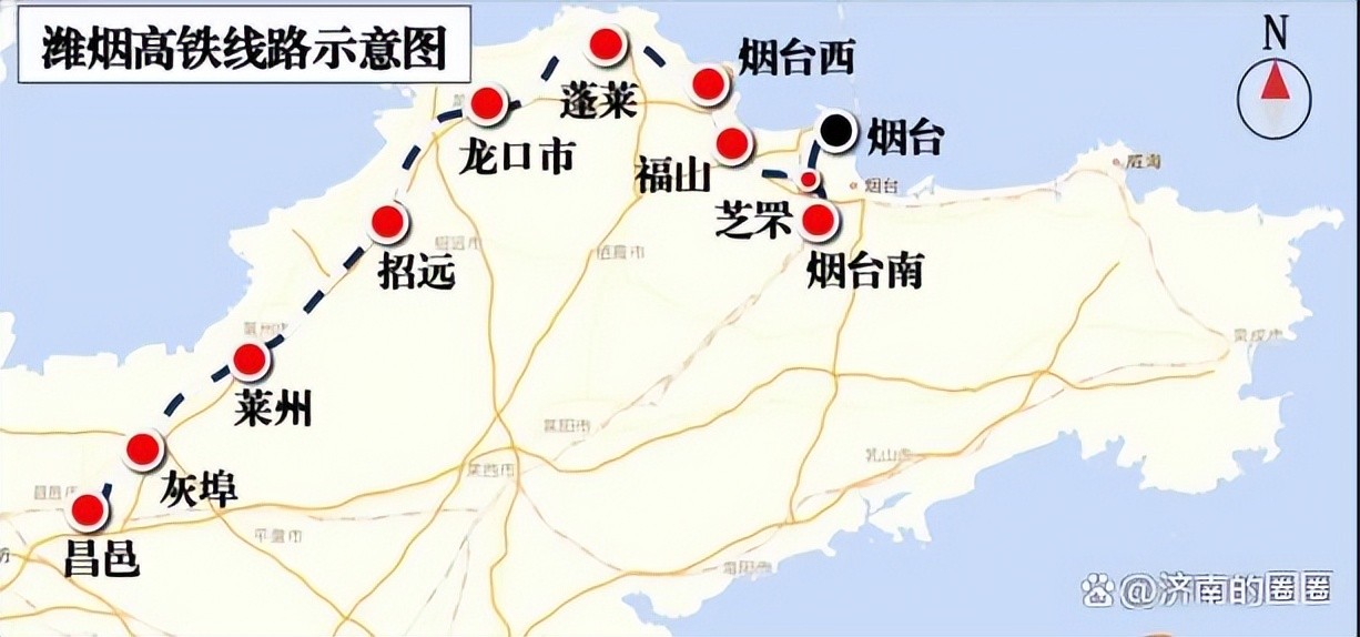 潍烟高铁、莱荣高铁开通后,胶东半岛高铁圈会形成闭环,山东的沿海城市交通闭环。