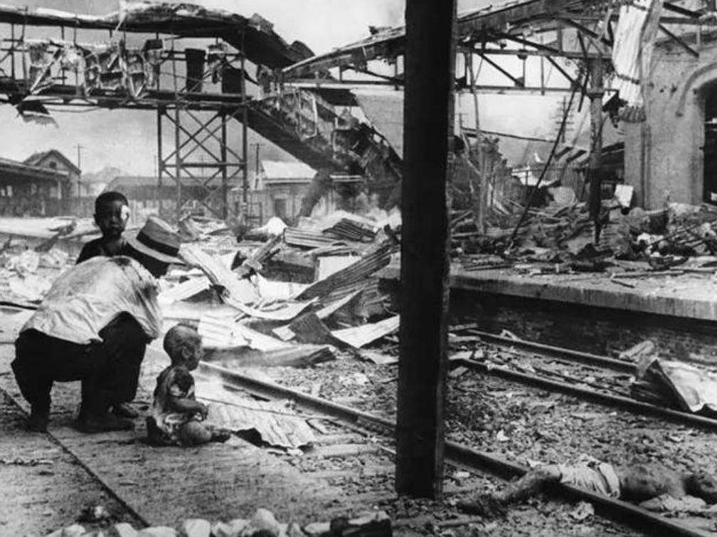 9.上海被轰炸后,一名记者拍摄下的照片,记录了日军的暴行。