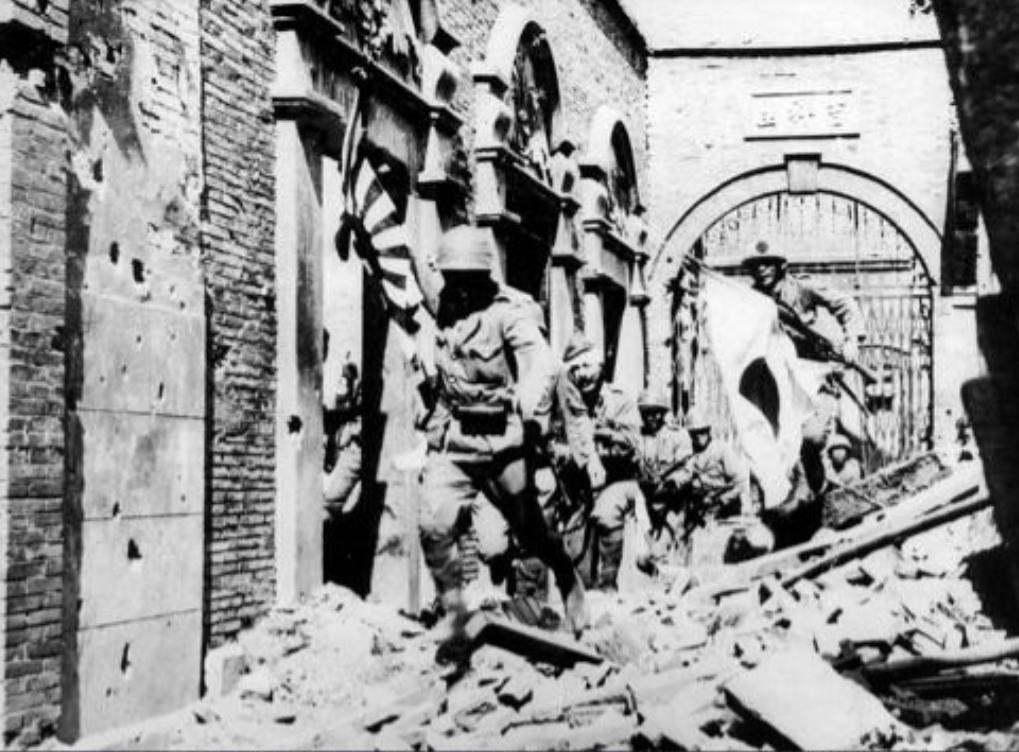 5.在遍地瓦砾的大街上运动突击中的日军,这才是抗日战场真实的样子