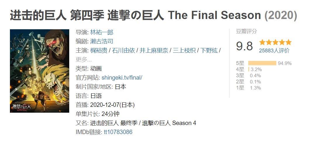 豆瓣评分9.8,《进击的巨人》好评如潮,但网友却分为了两派