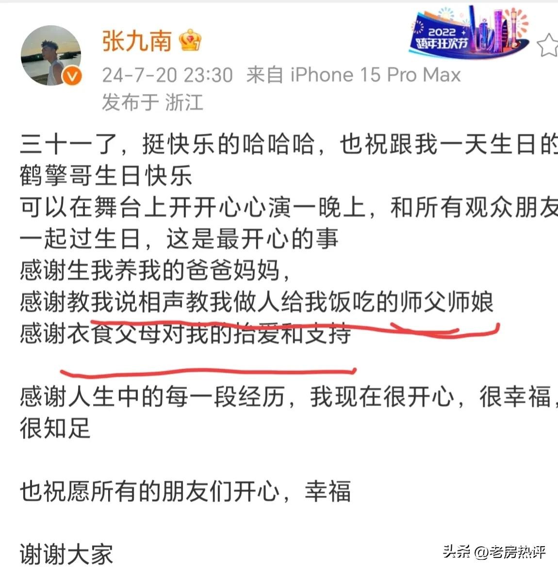 张九南能有今天的成绩最应该感谢的是师父郭德纲和粉丝的支持,没有郭德纲对张九南的信任和庇护,就不会有张九南的今天。