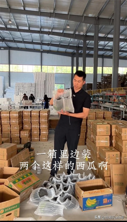 张自轩为大家说明西瓜的包装方式,里面一共有2个,外面都有防压包装袋,确实这都是大家需要关心的问题