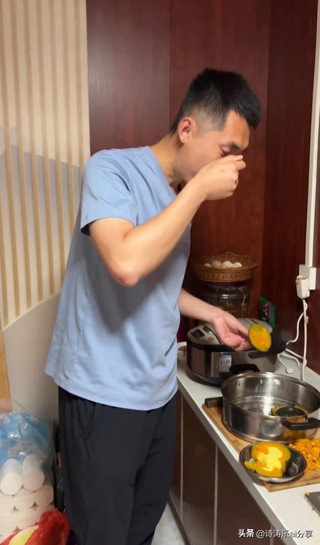 贝贝南瓜蒸鸡蛋做好啦,张自轩试了一口,贝贝瓜特别粉,鸡蛋特别滑!