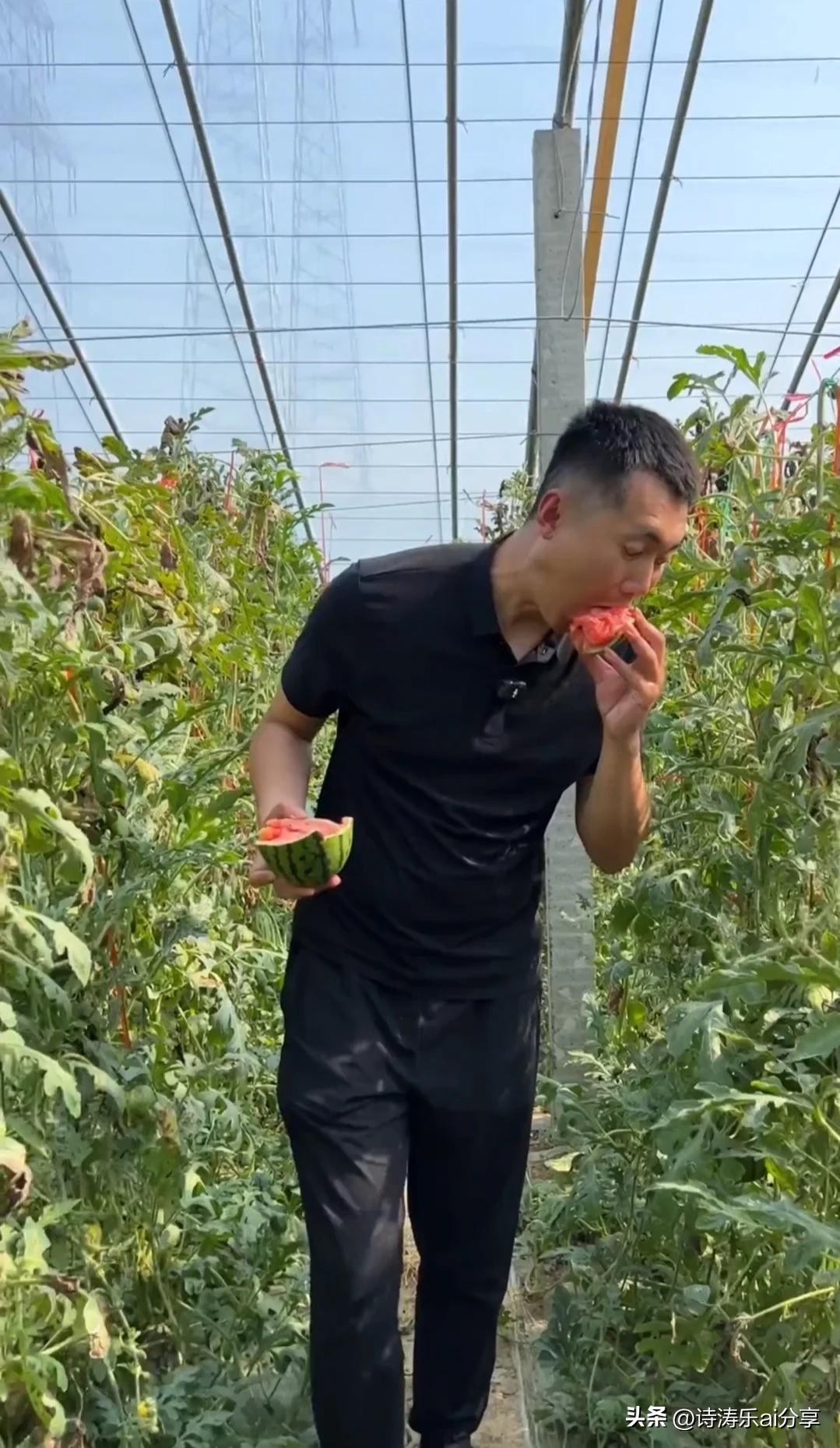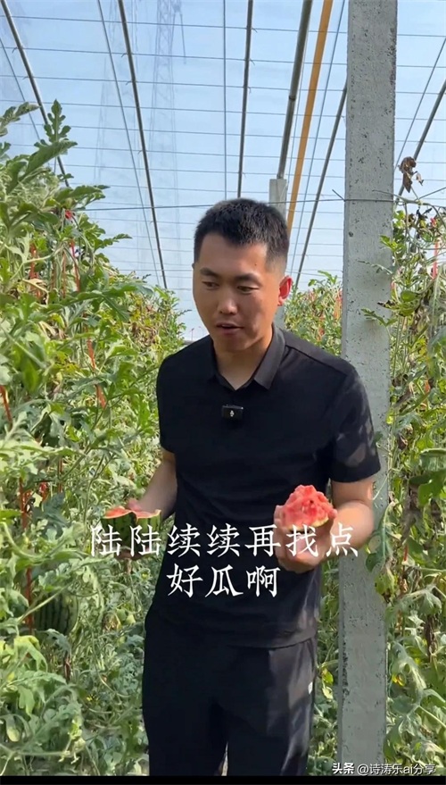 张自轩在努力为每一个人挑选更好的西瓜发给大家,这西瓜真的不错啊!