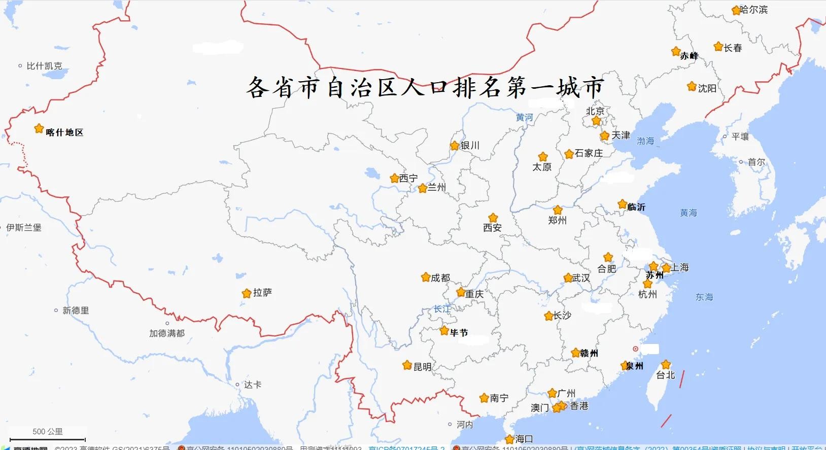 共有七个非省会城市:内蒙古(赤峰)、山东(临沂)、贵州(毕节)、江苏(苏州)、江西(赣州)、福建(泉州)、新疆(喀什地区)是所在省份(自治区)人口第一城市。