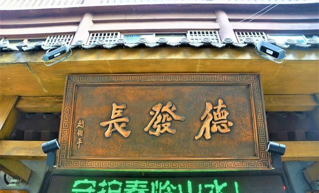德发长是中华老字号,西安钟楼西北角就有一家,和同盛祥是对门。原来小雁塔旁边也有一家,可能搬迁了,上次没有找到。德发长最特色的就是它的饺子宴,风味水饺是一绝,还有精品菜肴。图中是德发长牌匾。
