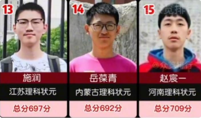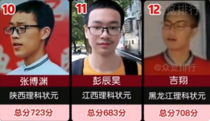 各省市高考成绩最高的第1名考生,已经出炉了。