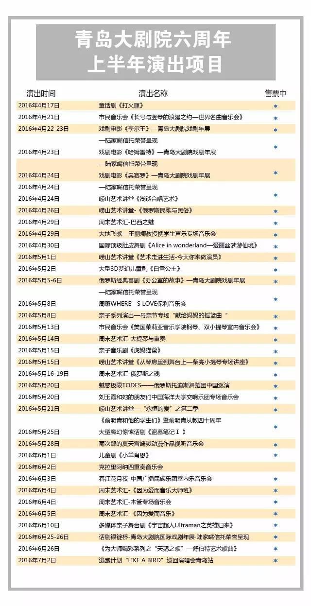 青岛大剧院六周年,关注“polyqddjy”微信账号