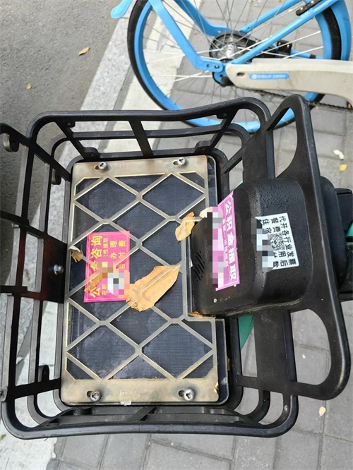 记者注意到,除了地铁站附近的共享单车上有小广告,马路边停放的共享单车也有的被贴上了小广告。小广告有的是纸张的形式,附着二维码和联系电话,粘贴在共享单车车筐、把手等位置,还有的是印章的样式,直接盖在车座上。内容则大多是贷款、代开发票以及按摩等内容。市民们表示:
