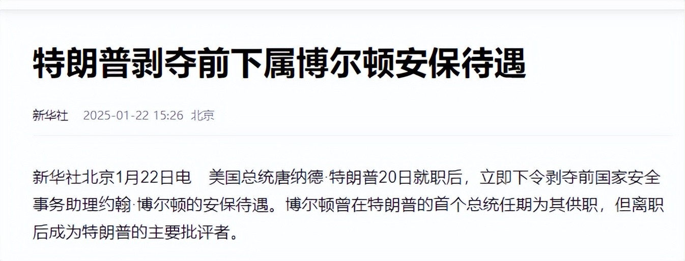 可让人意外的是,当年在背后推动这件事情发展的博尔顿,却成为了特朗普的敌人?还被取消的安保待遇。