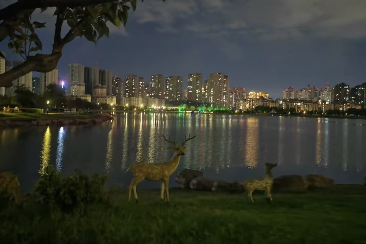 网友@萧蔷推文私心安利鹿鸣湖,这里湖光楼影,幼鹿雕塑栩栩如生。网友@咖啡的雨季推荐西大街的西湖公园,夜赏荷花,岂不美哉。