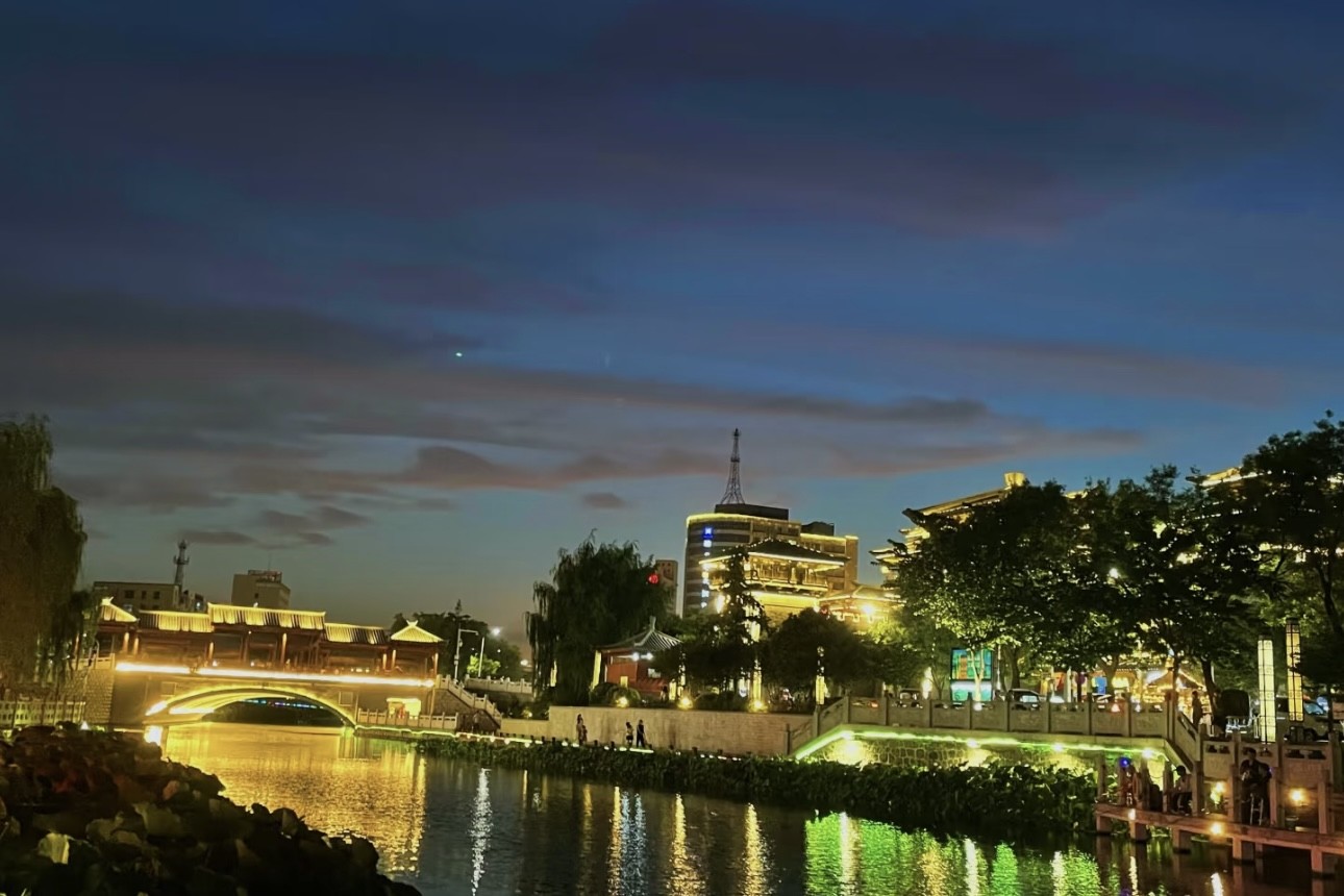 夜幕下,花30元乘水上公交,看5公里河道串起28座古桥,望仙桥、春秋桥在光影中化身时空隧道。当地居民推荐选19:30的夜班船,此时两岸灯笼初亮,豫剧唱腔从岸边茶馆飘来,恰似《梦华录》里“东风夜放花千树”的盛景。