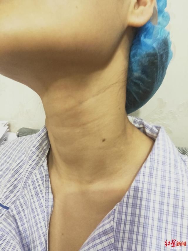 杨某姐姐告诉记者,为了做术前术后对比,杨某曾拍了几张脖子的照片,新闻记者从她提供的照片上看到,杨某的脖子当时并无任何伤痕。