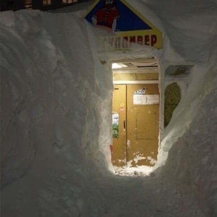 俄罗斯最冷的城市,这里的雪厚的把小区门都堵住了