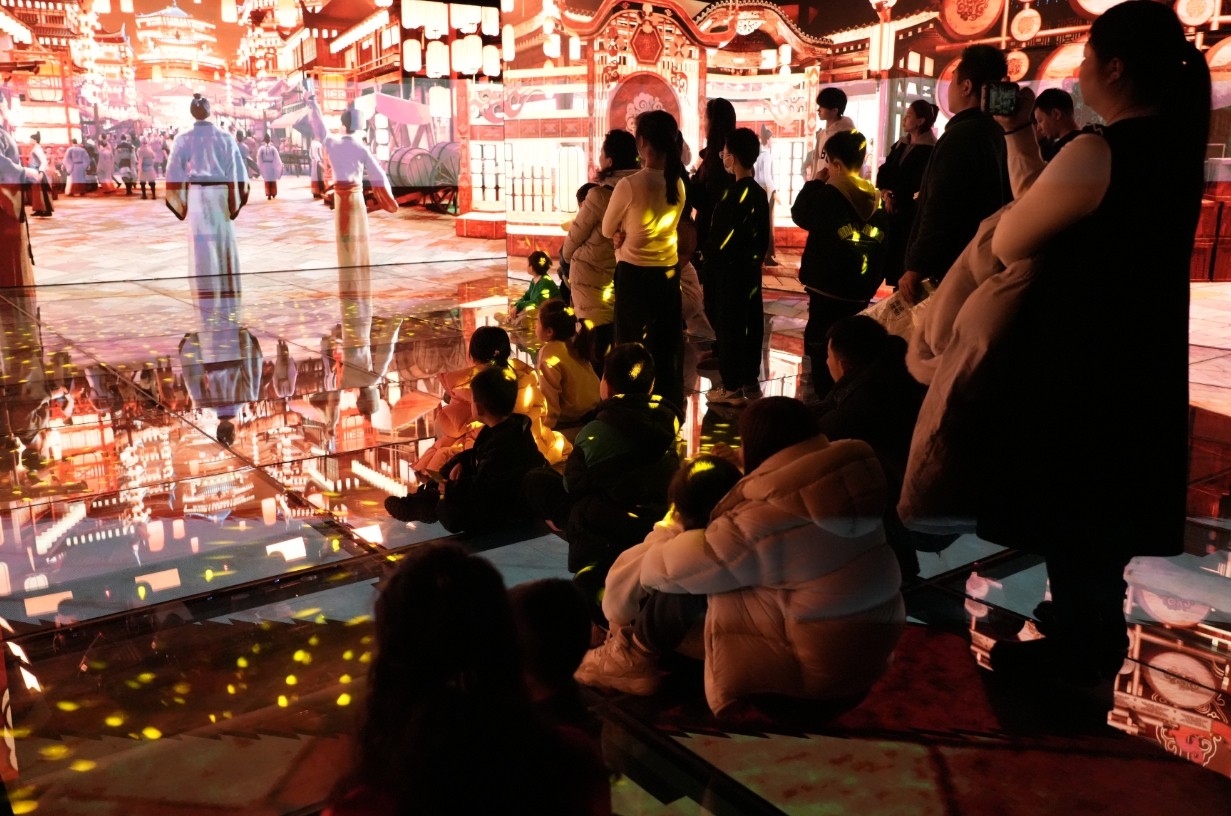 网友“大E小O”留言说:“当540°环形幕布亮起的刹那,我明显感觉儿子在我身边‘哇’地坐直了身子,仓颉造字的字符像流星雨砸向观众席,他伸手去抓虚拟的甲骨文;李白吟诗时剧场仿佛飘进了酒香,小家伙居然跟着摇头晃脑背《将进酒》。”