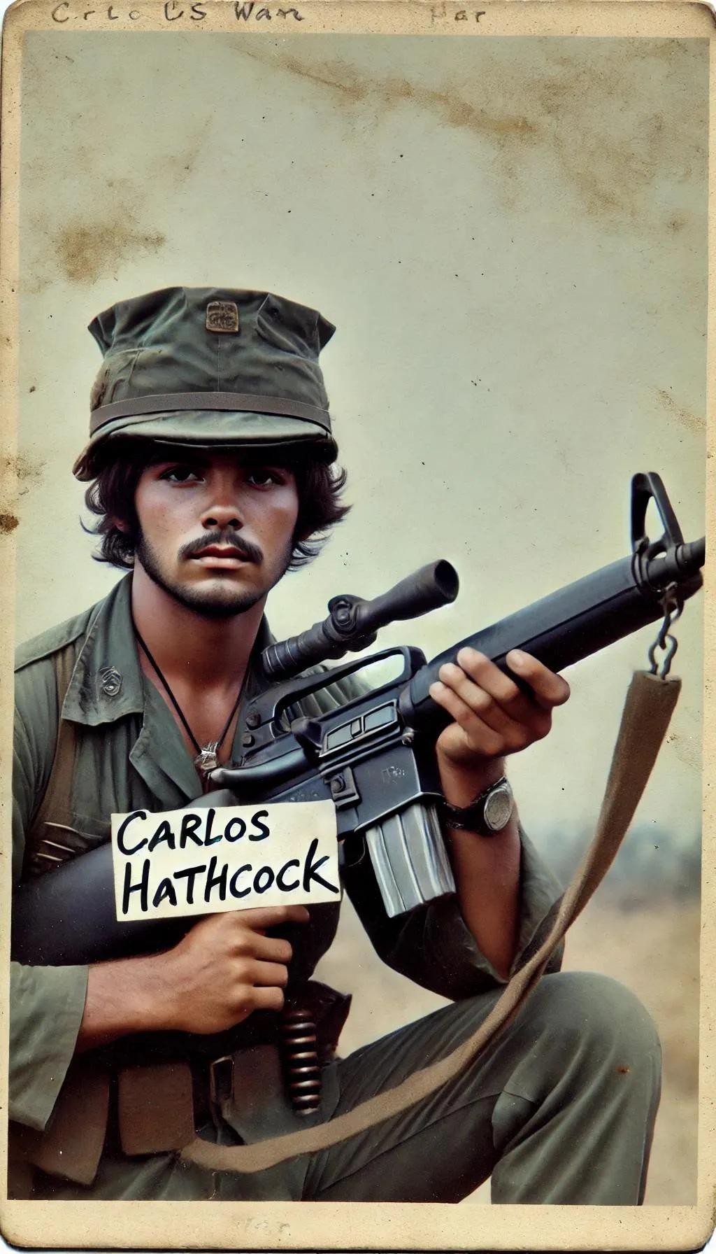 个人情况:卡洛斯是美国海军陆战队的狙击手,以其在越南战争中的战绩闻名。