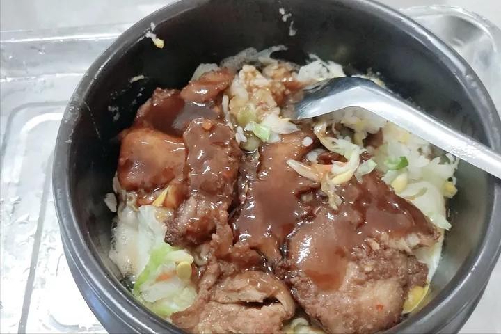 仁苑二楼的猪排石锅饭,没记错的可能是9.5r或者10.5r