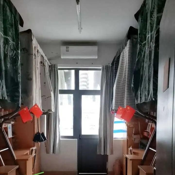 宿舍是四人间,上床下桌,桌子旁是自己的柜子,活动空间足够,有阳台有空调,且寝室没有规定熄灯时间(意思就是大家想什么时候关灯就什么时候关灯),因为每月会赠送20度电,所以不开空调的时候完全够用啦~如果是夏冬季节需要开空调,需要自己充电费(校园卡即可)