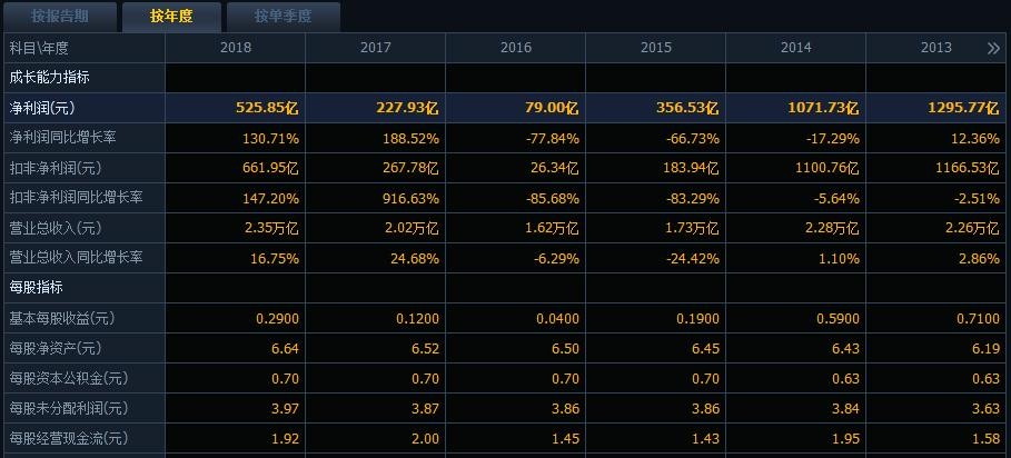而中国石油属于明显的周期性行业,业绩没有稳定性和持续性,净利润是起伏变化的,比如在2013年和2014年,中国石油的净利润均超过了1000亿元,但在2015年,中国石油净利润确下滑了66.73%,2016年继续走低,再次下滑77.84%。