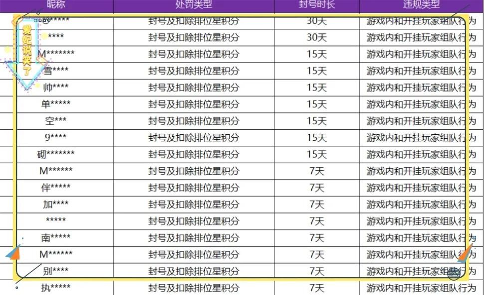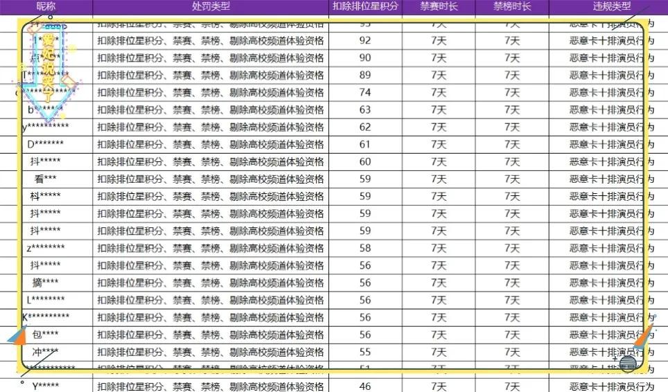那么对于这种行为的玩家,官方也是给予了禁赛,禁榜,并且扣除其段位星积分的处罚。