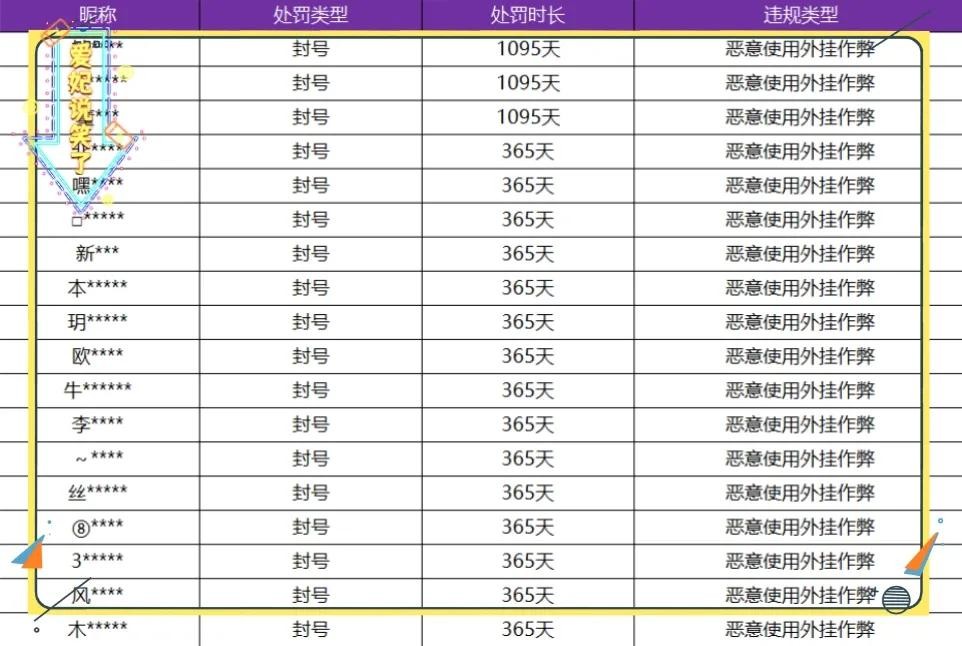 官方几乎每两周,就会公布一批封号处罚名单,这也足以说明开挂的玩家确实一直都存在,即使封掉一批又一批。