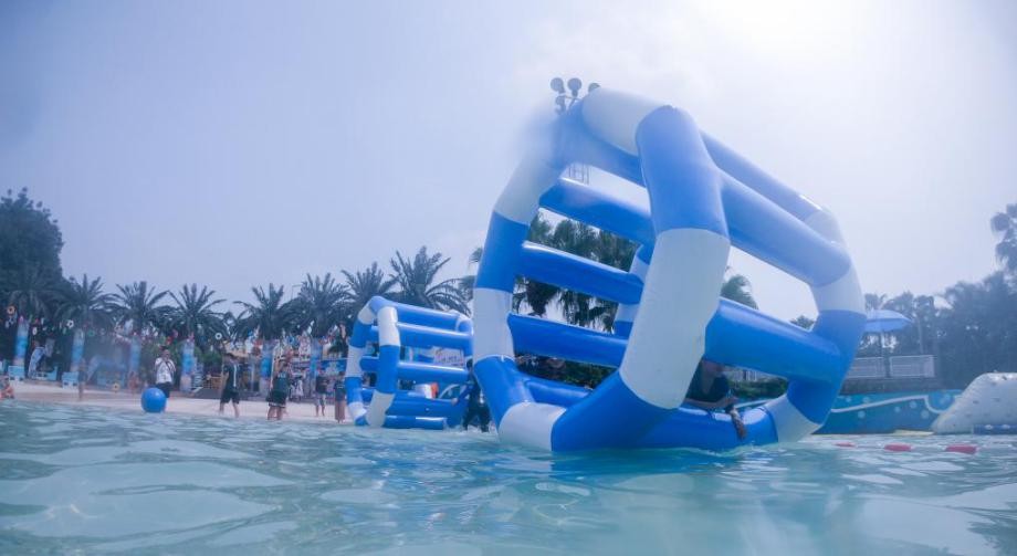 夏日专属酷爽挑战营:水上滚筒接力、水上浮垫竞速跑、勇夺冰山等精彩连连的挑战等着你,尽情释放荷尔蒙,燃烧你的卡路里。