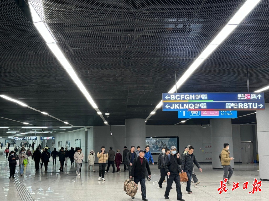 2月19日,地铁光谷广场站,乘客在2号线与11号线之间换乘,客流平稳有序。 记者陶常宁 摄