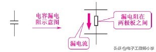 电容漏电说明电容两极板之间存在漏电阻,如图1-36所示,漏电流是通过这一漏电阻从电容器的一个极板流到另一个极板的。
