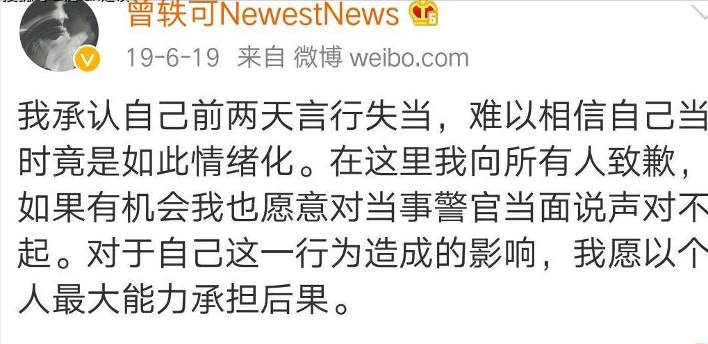 原本想着在网上卖卖惨博个同情,却没想到搬起了石头砸自己的脚,曾轶可也很快地发布了一条道歉声明,承认自己的错误,会承担一切后果,但不得不说,曾轶可的这个举动确实让人下头。