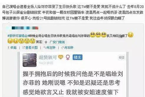 曾轶可在她唱歌的时候目光始终都在刘亦菲的身上,眼神是藏不住的爱意,也许是因为这些行为导致了刘亦菲粉丝的不满,毕竟在他们的心里仙女姐姐是断断不能找一位女孩子的,于是纷纷在微博留言希望两人之间的情感只限于友谊之间。