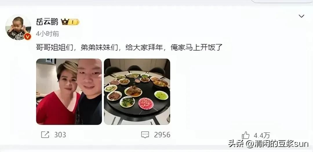 岳云鹏的北方大餐:岳云鹏的年夜饭非常接地气,大肘子、土豆炖牛肉等北方传统菜肴一应俱全。此外,还有摆盘精致的水萝卜和清爽解腻的蘸酱菜,非常符合北方人的口味。