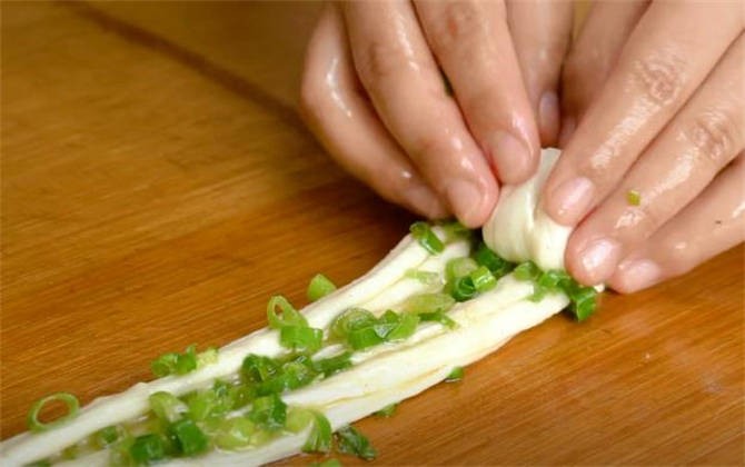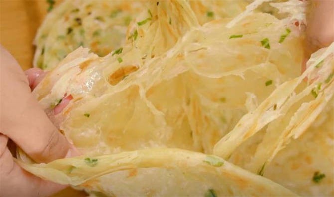 10.这样做的葱花饼轻轻一扯就能看到很多层次,喜欢就收藏起来试试吧。