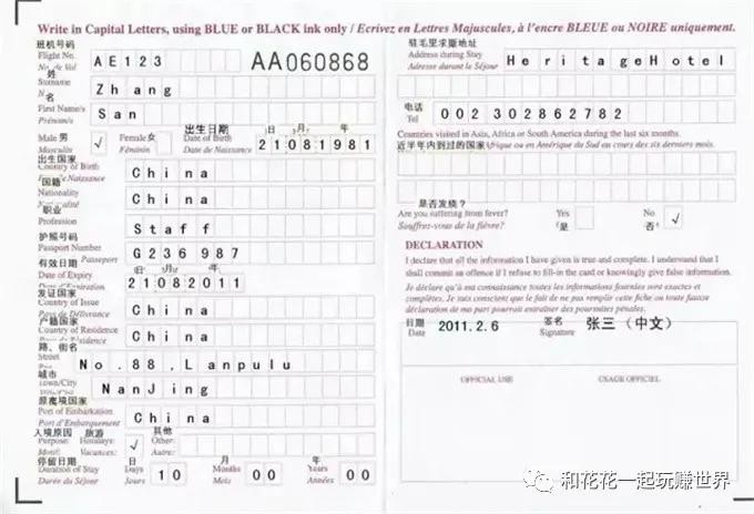 飞机抵达毛里求斯前,空姐会发放入境卡和健康卡请游客填写。入境卡填写的内容包括个人信息,航班号码,入住酒店等。健康卡填写内容主要是是否有发烧感冒等。
