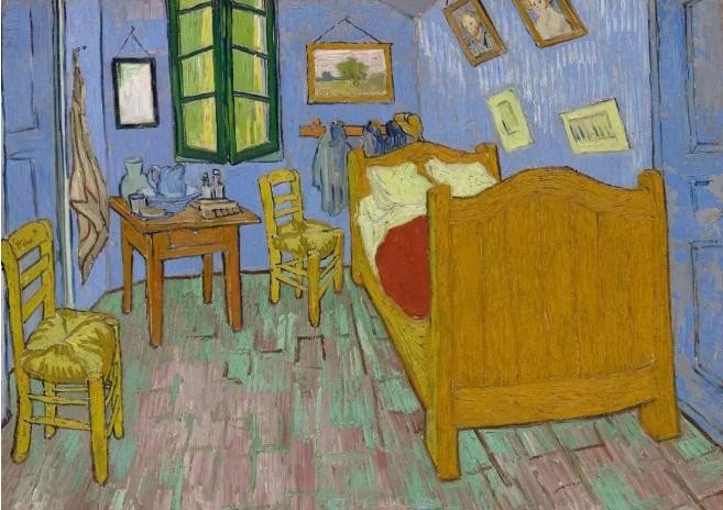 据闻,梵高于1888年5月住进这间卧室,一直到1889年的4月。在这小小的卧室内,他的创作水平达到了巅峰:他接连创作出了《向日葵》、《星夜》、《夜间咖啡馆内(外)景》等系列。当然他怎么都不会料到,在这方天地创作的每一幅作品如今都世人拍出了上亿的价格。