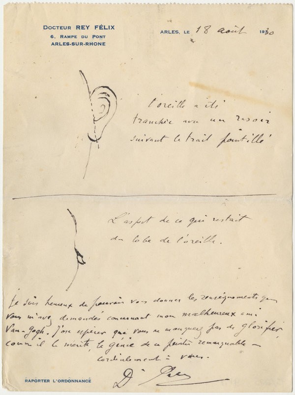 ▲雷伊医生在处方笺上画下了梵高受伤的耳朵