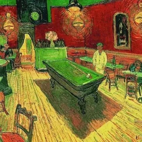(同一个咖啡馆,上面是我画的,下面是梵高画的,没想到我俩的差异那么大。