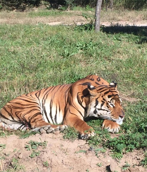 这个时候,野生动物园的工作人员终于赶到了现场,赶忙拿起叉子和棍棒驱赶老虎,在几个人的合力制服下,老虎才松开了口跑向了草丛深处。