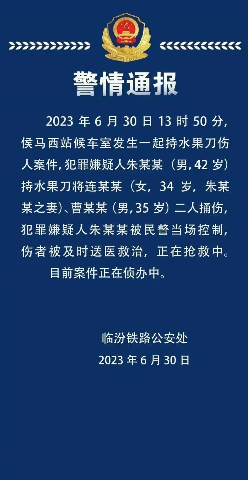 最近,山西省临汾市发生了一起持刀伤人案件,造成两人死亡。这个案件在社交媒体上引起了广泛的关注和讨论。据报道,犯罪嫌疑人在侯马西站候车室持水果刀捅伤两人,其中一人是自己的妻子和朋友。