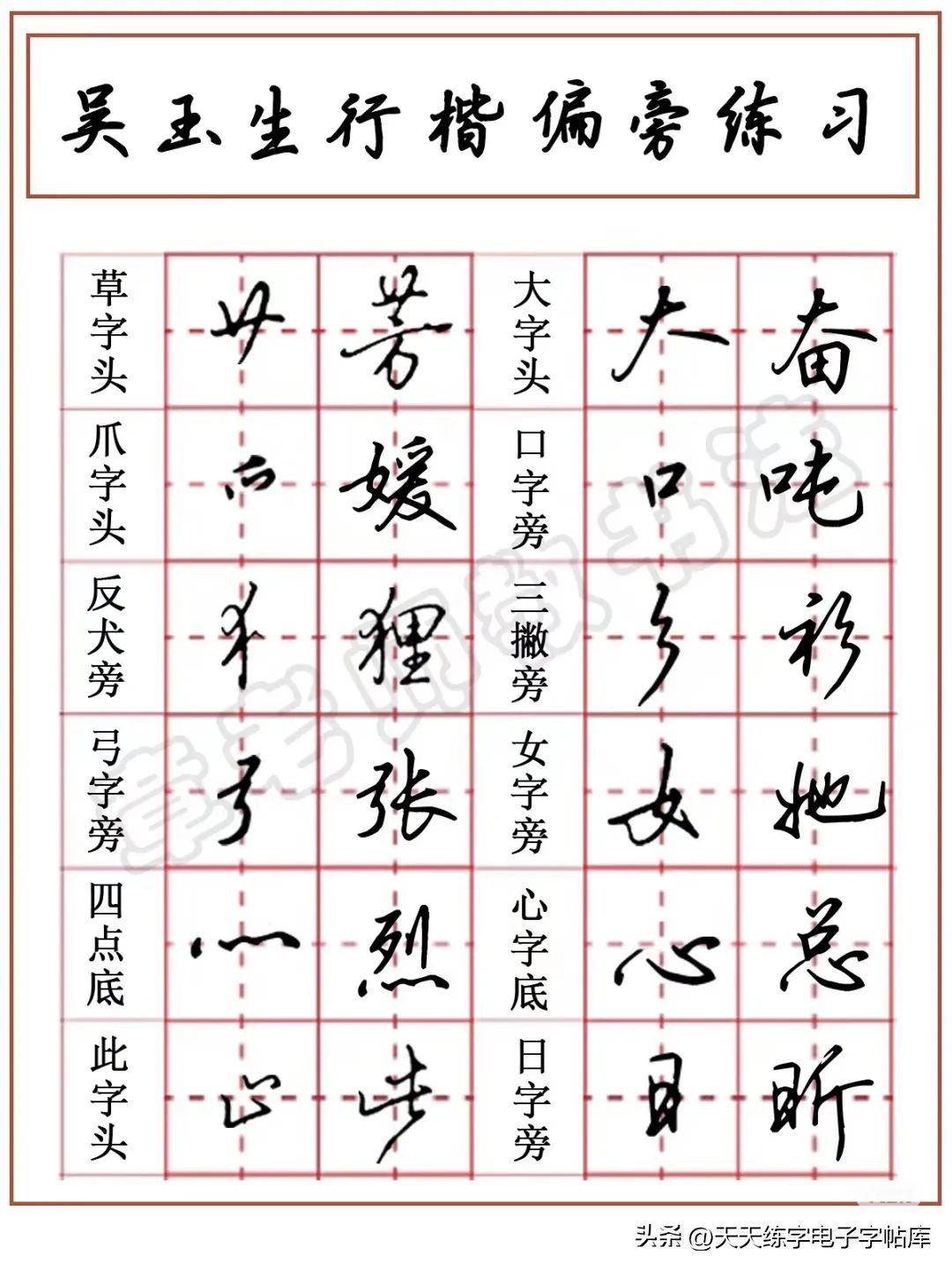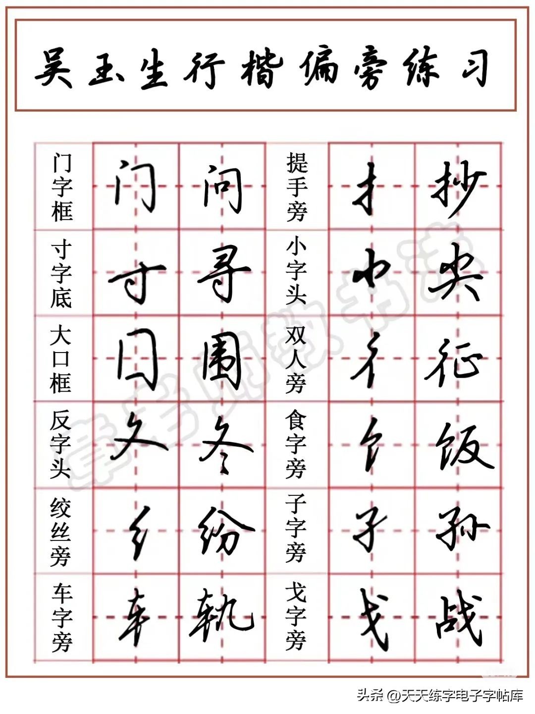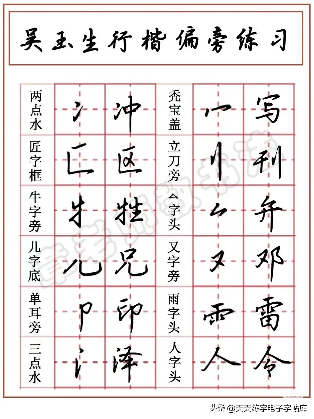 干货!吴玉生行楷笔画、偏旁解析及例字练字帖