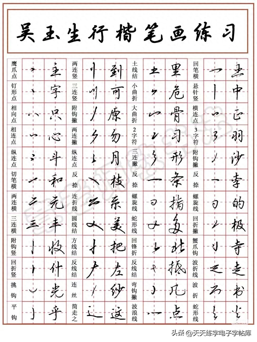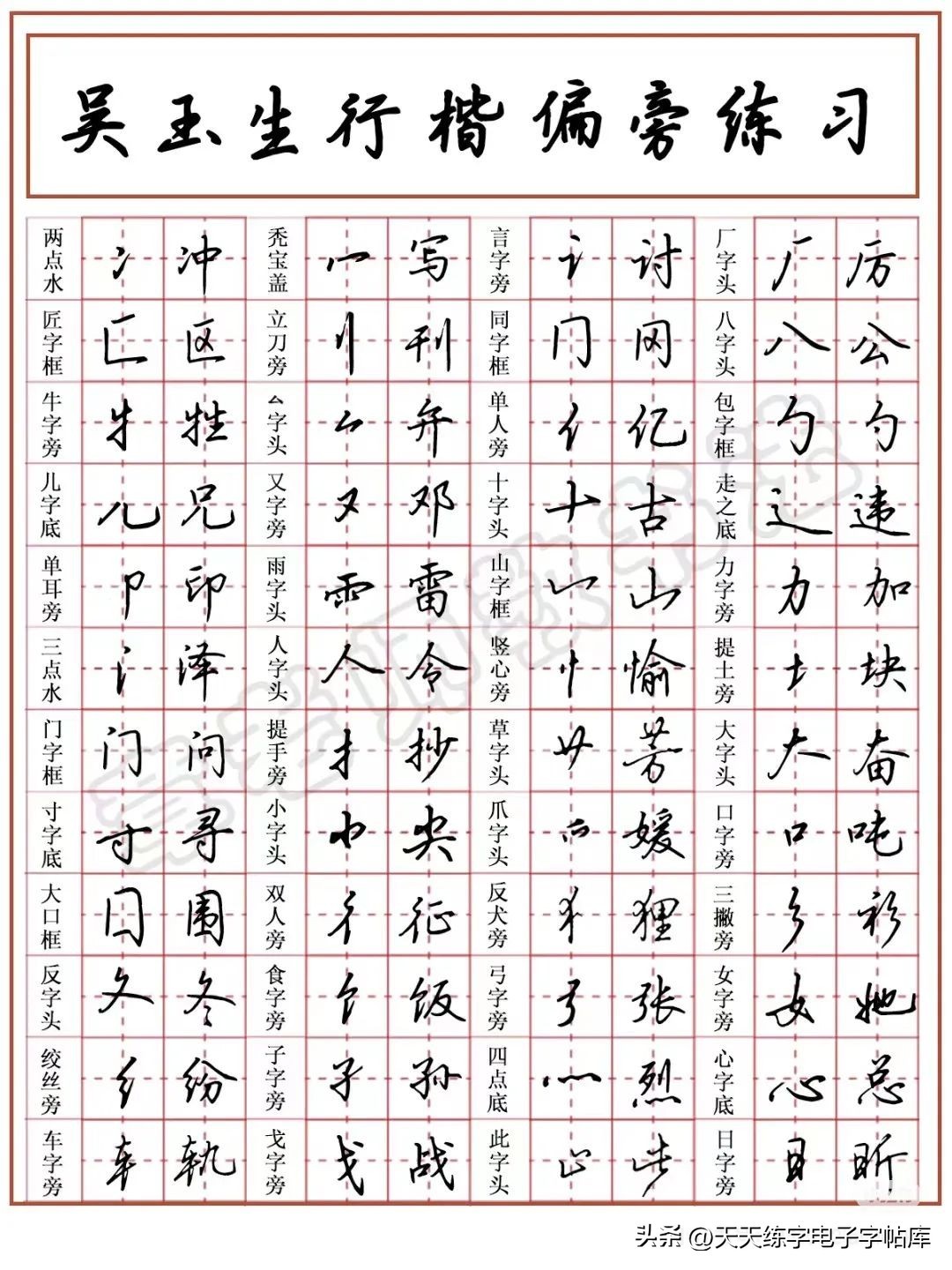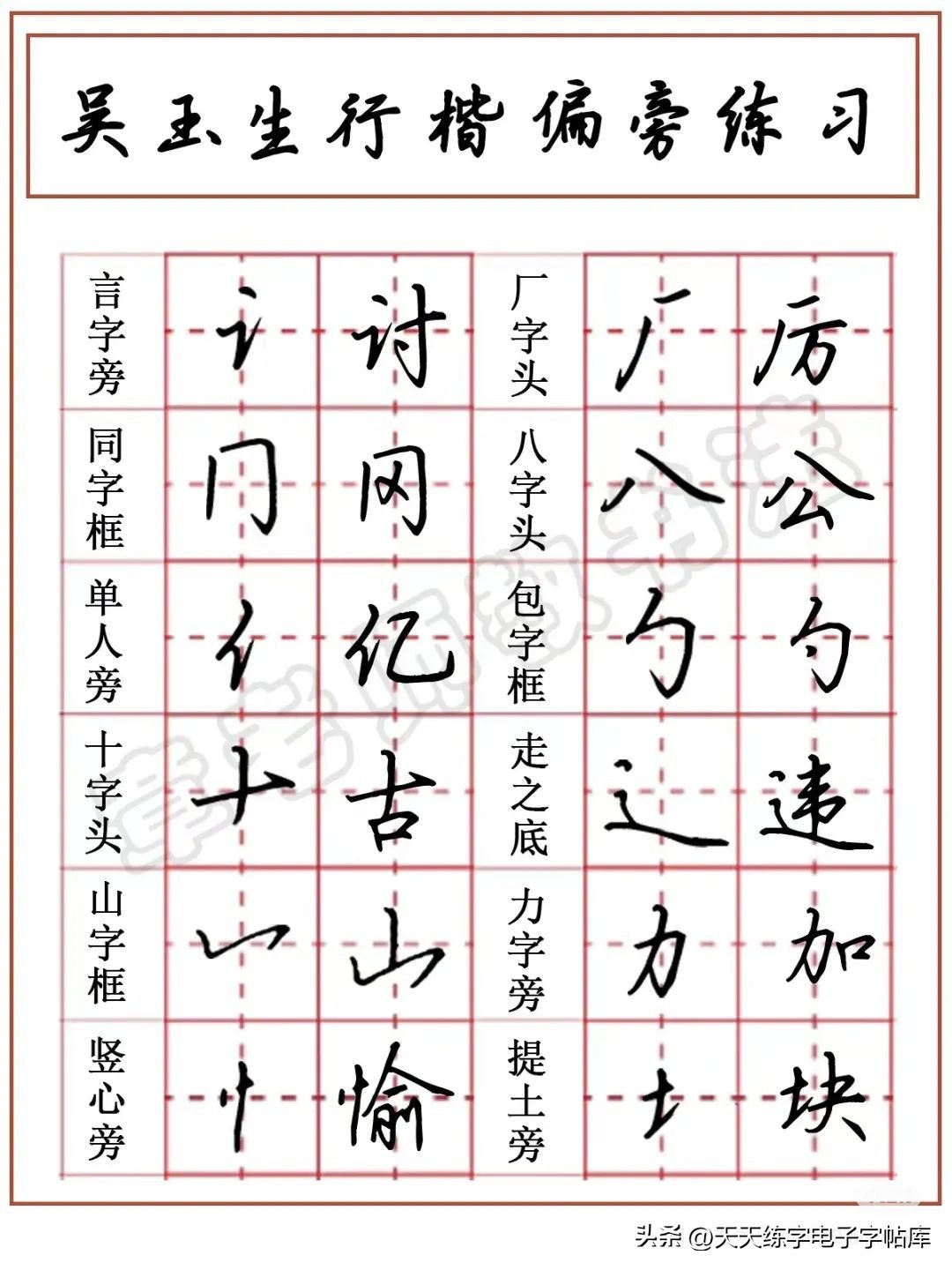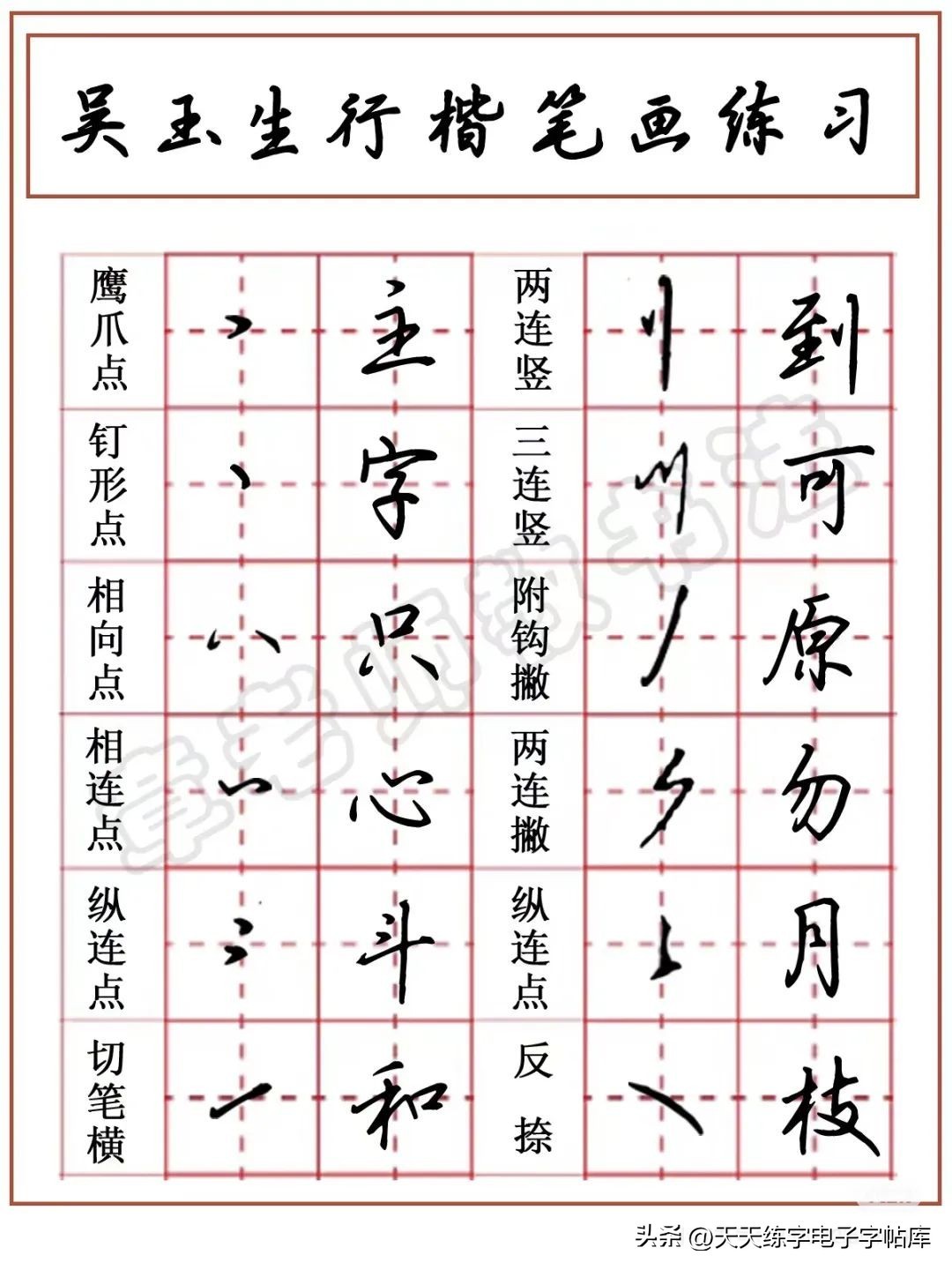干货!吴玉生行楷笔画、偏旁解析及例字练字帖