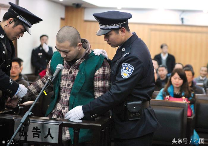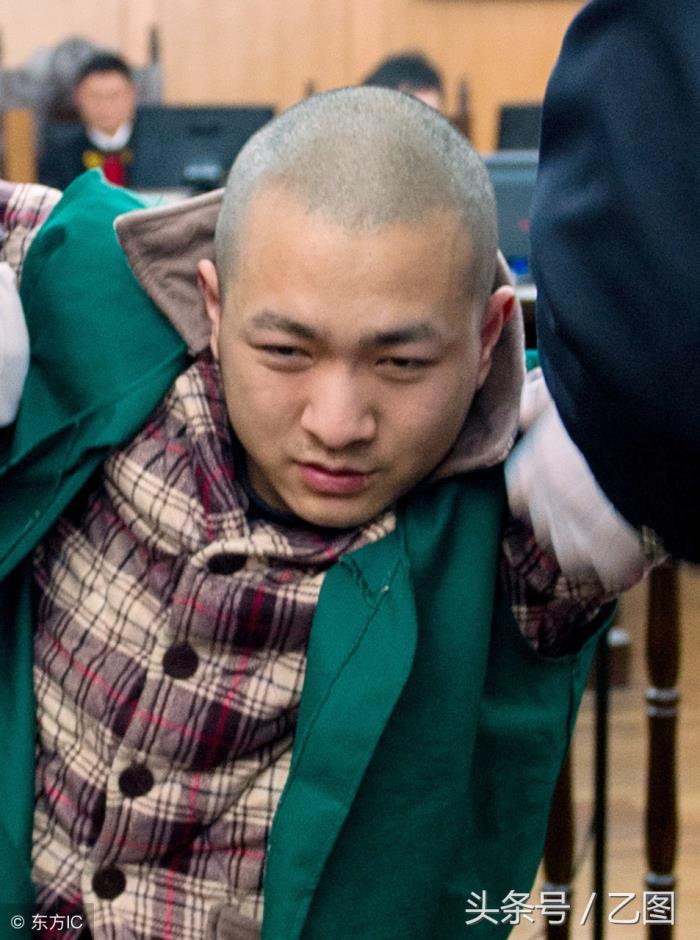 据了解,事发前胡某和谈某共发生三次正面冲突,第一次是在2012年10月中旬,胡某在图书馆等待小静,小静不愿意出去,谈某走出来“警告”胡某“以后不要再纠缠小静”。一个月后,两人在图书馆的电梯前再次撞面,并发生矛盾,为此胡某怀恨在心,恼羞成怒准备报复谈某。之后胡某在网上购买一把长约30公分的斧头,一直放在自己的电动车坐垫下。图为被告人胡某被法警带上法庭接受审判。(图片来自东方IC)
